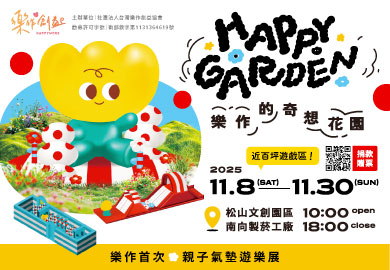 【HAPPY GARDEN 樂作奇想花園】全台首場結合公益與遊樂的親子氣墊展登場!由台灣樂作創益協會主辦,邀您與孩子一同走進近百坪奇想花園,在遊戲、互動與吉祥物樂寶陪伴中,體驗寓教於樂的快樂公益。活動所得將全數投入公益,讓每一次玩樂都成為助人的力量。