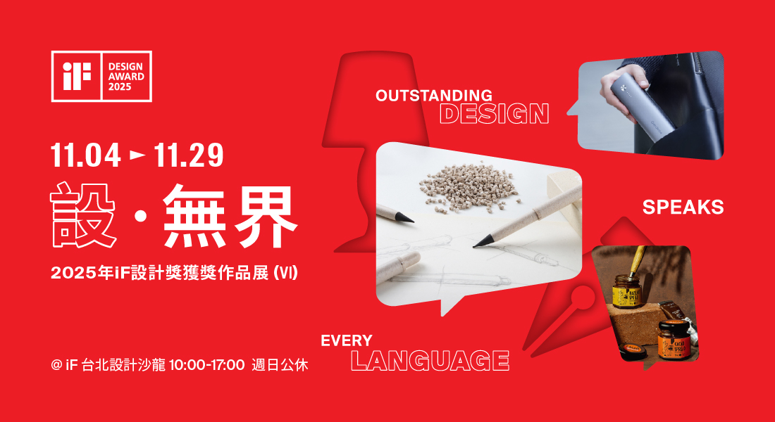11 月 4 日起,就來 iF 台北設計沙龍看看來自全球 30 件獲獎產品、包裝及傳達設計作品,感受不受地域界限框定、恣意奔流的滿滿創意!