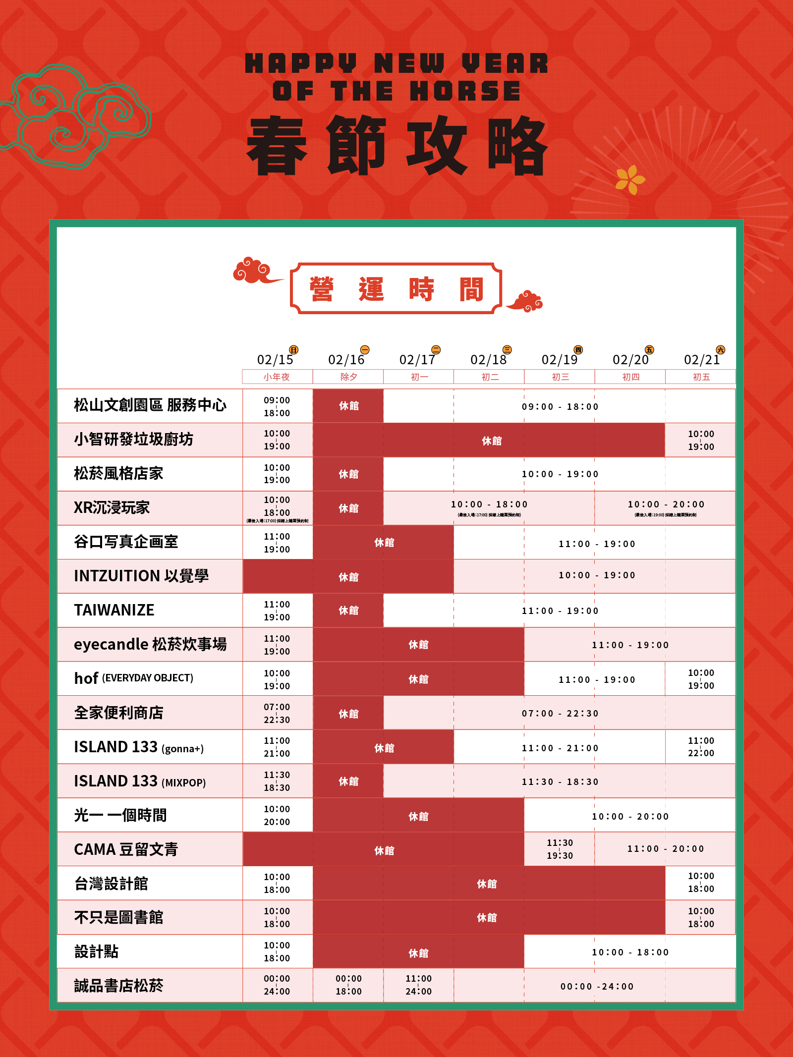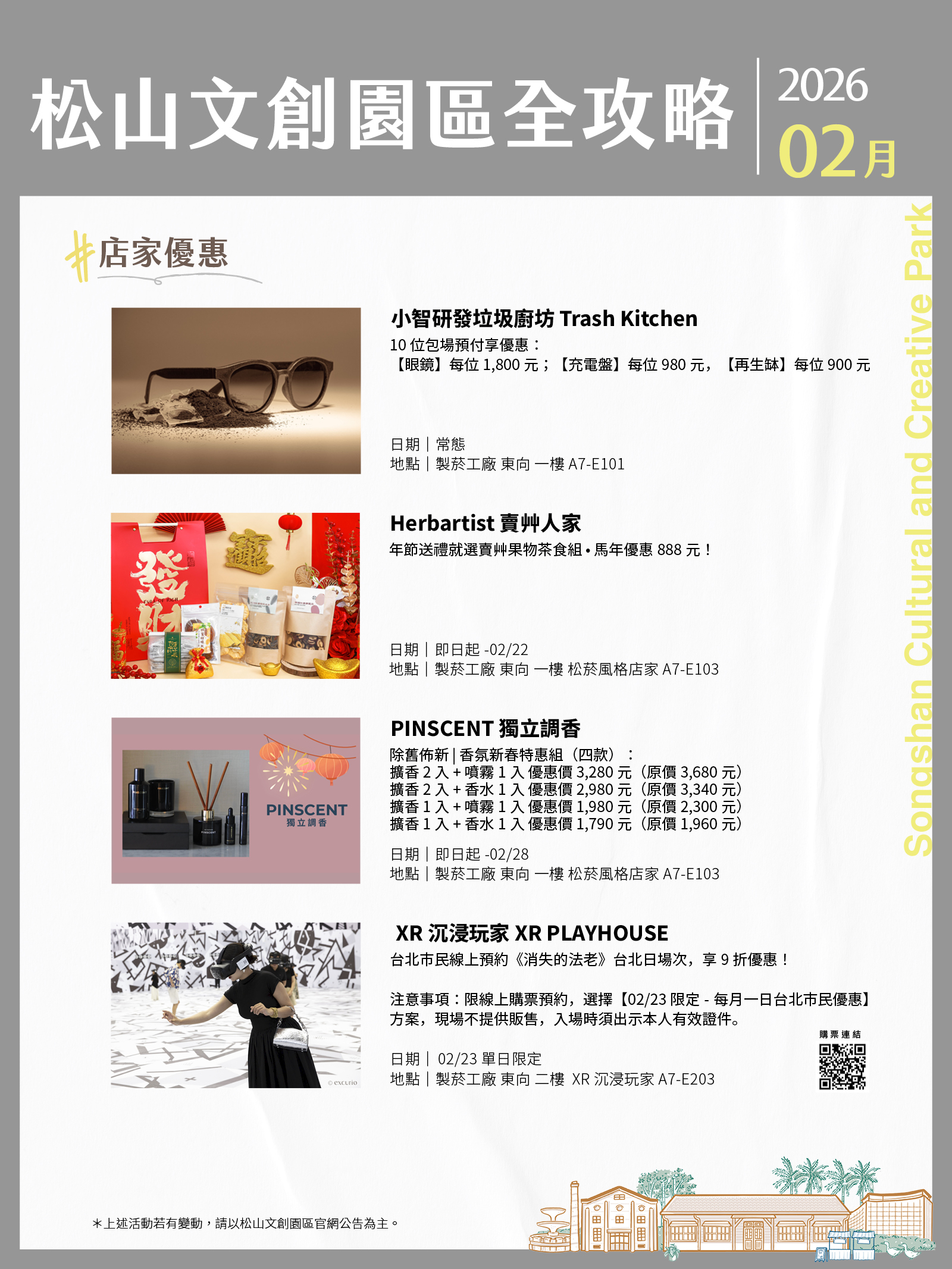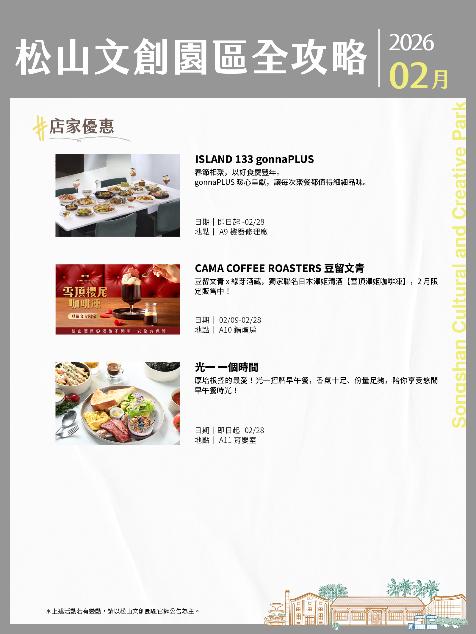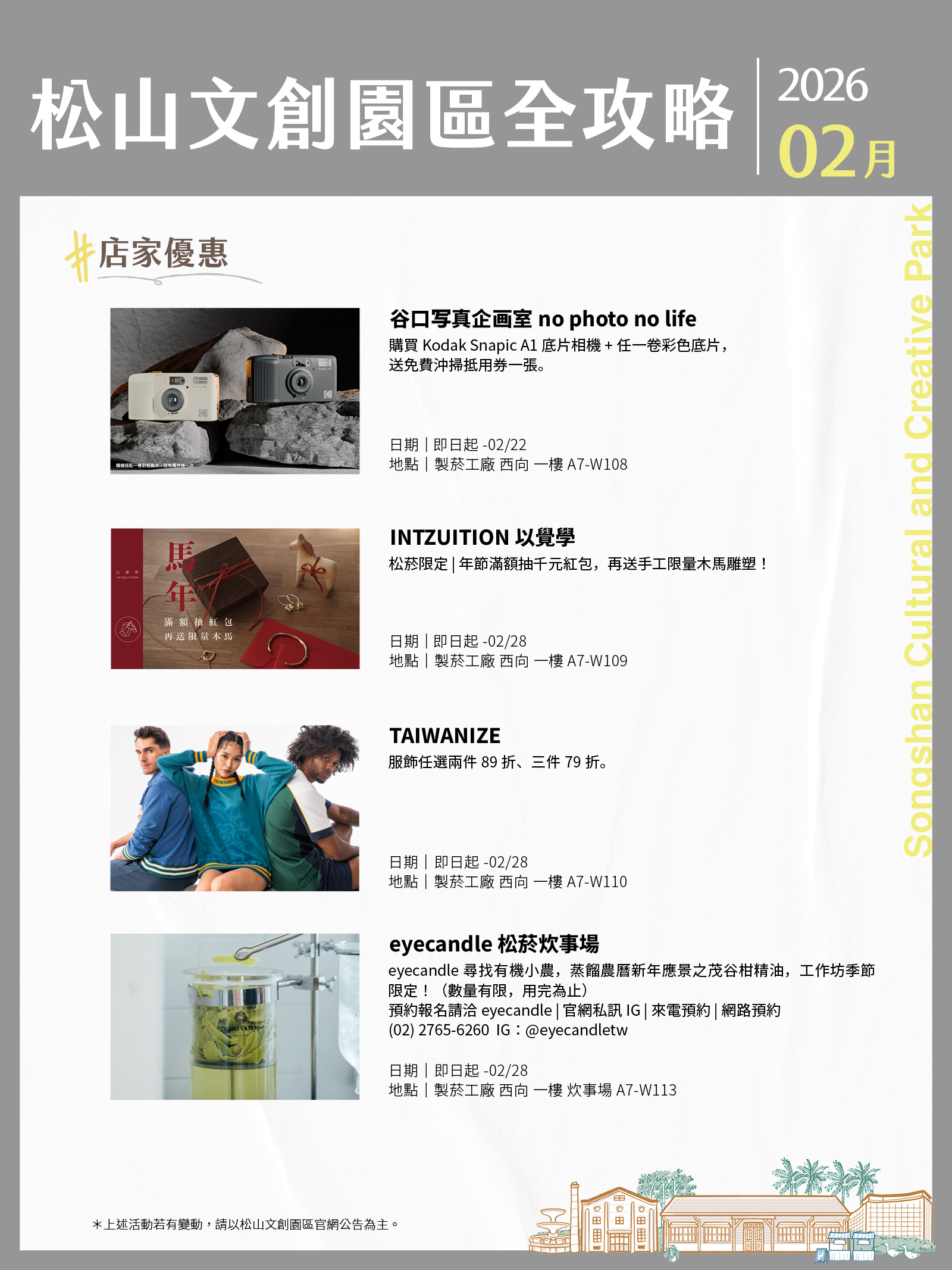 松山文創園區、臺北大巨蛋、臺北文創、誠品生活松菸2月活動攻略都在這!