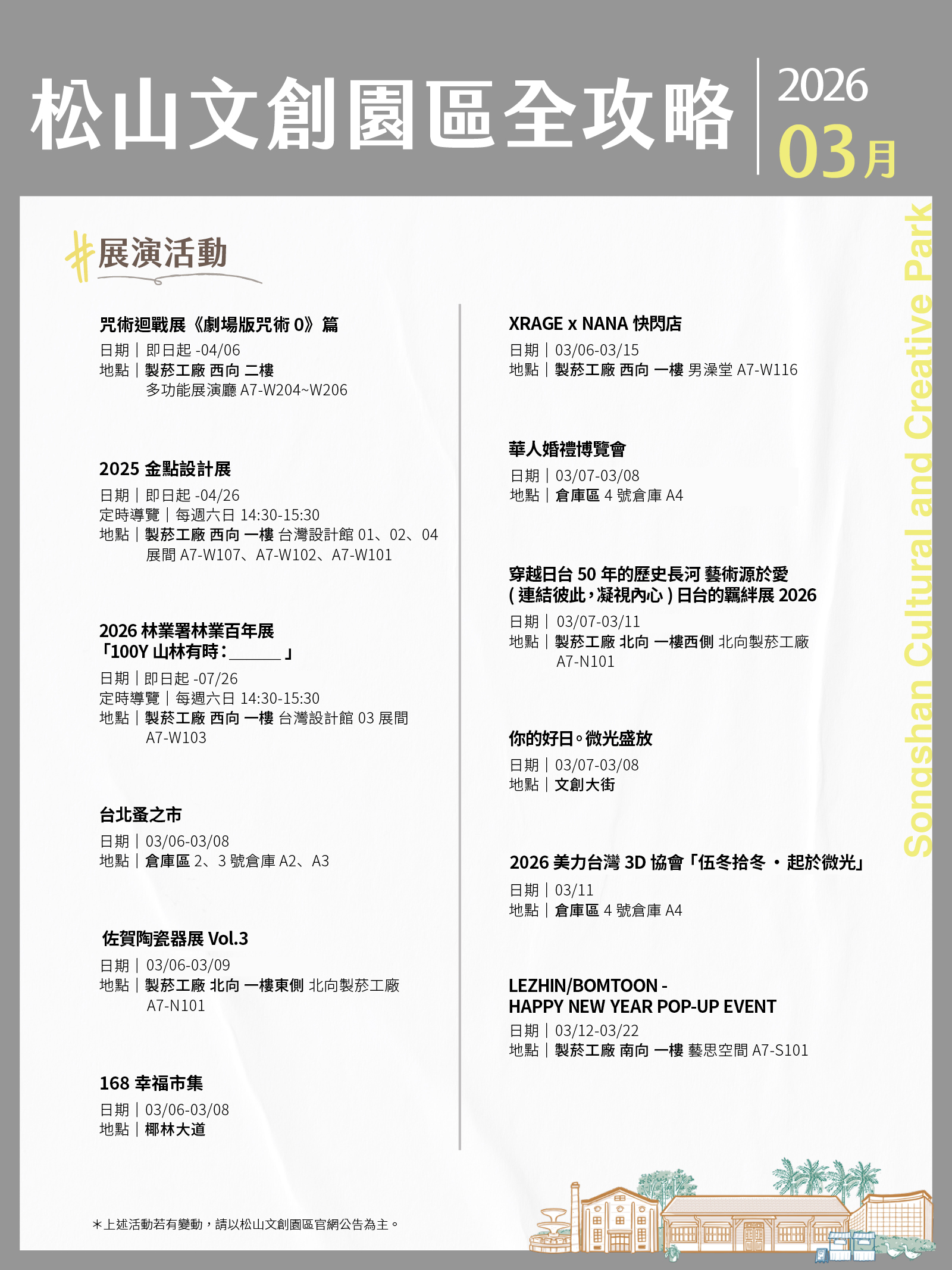 松山文創園區- 3月展演攻略