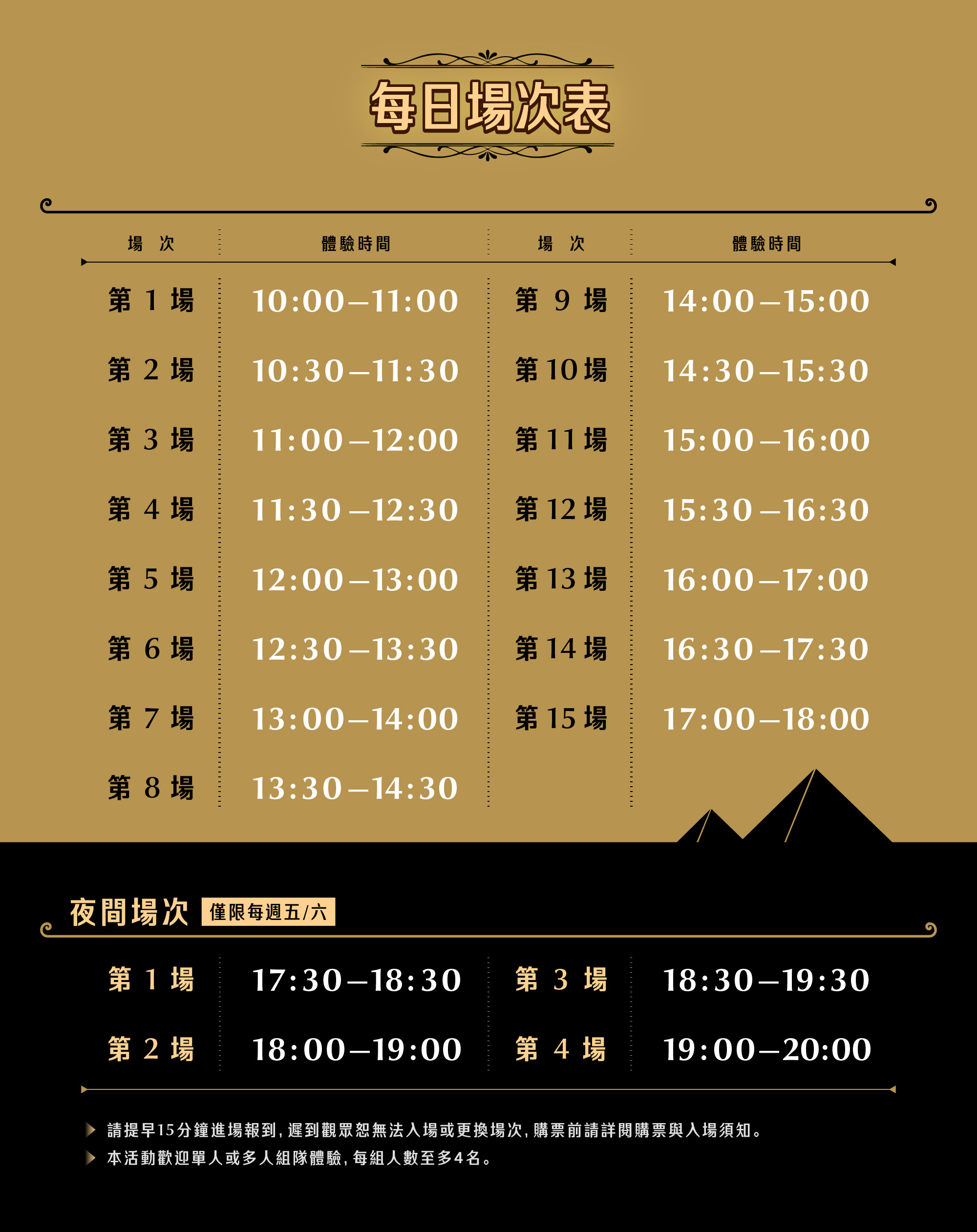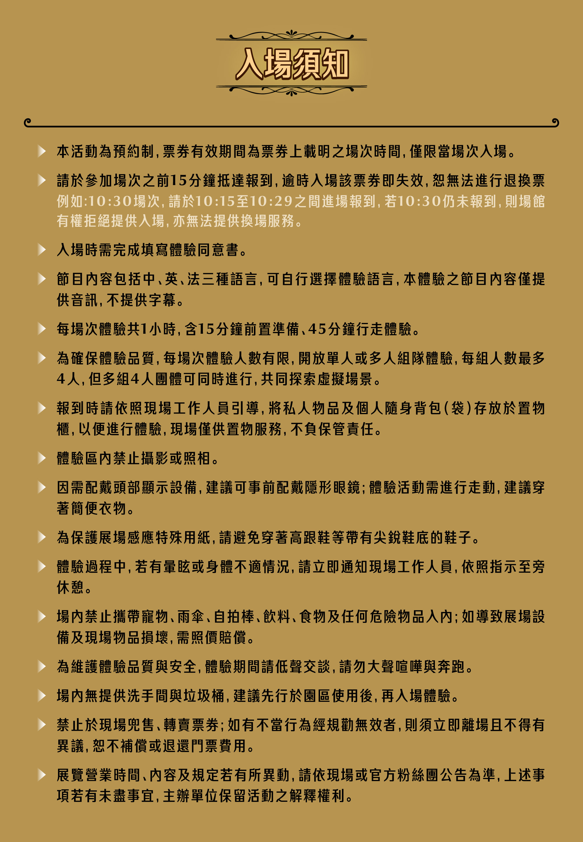 ✔本活動為線上購票預約制,請於參加場次之前 15 分鐘抵達報到,逾時入場該票券即失效