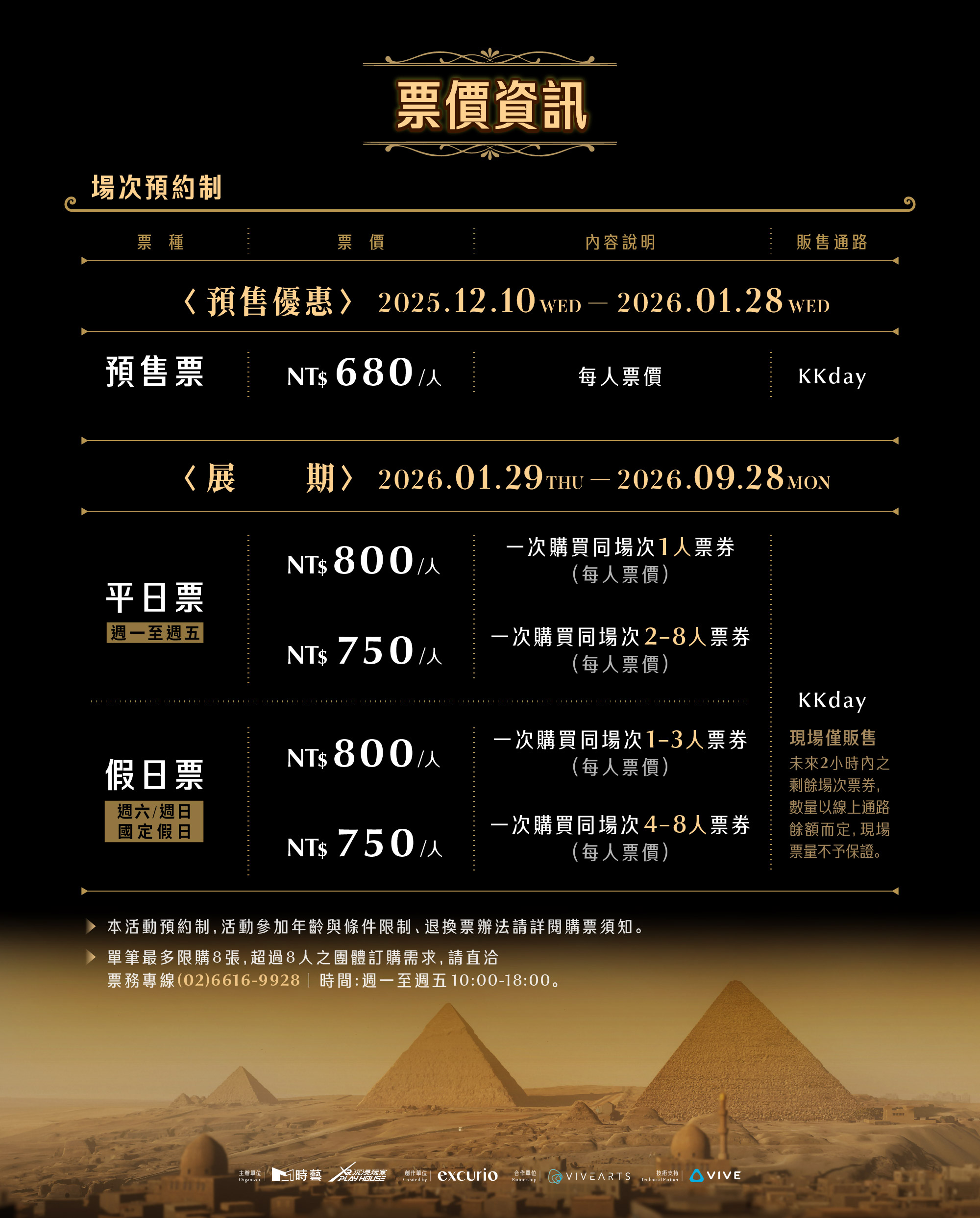 ►週日至週四 10:00-18:00(17:00 最後入場)、週五至週六 10:00-20:00(19:00 最後入場),採線上購票預約制。