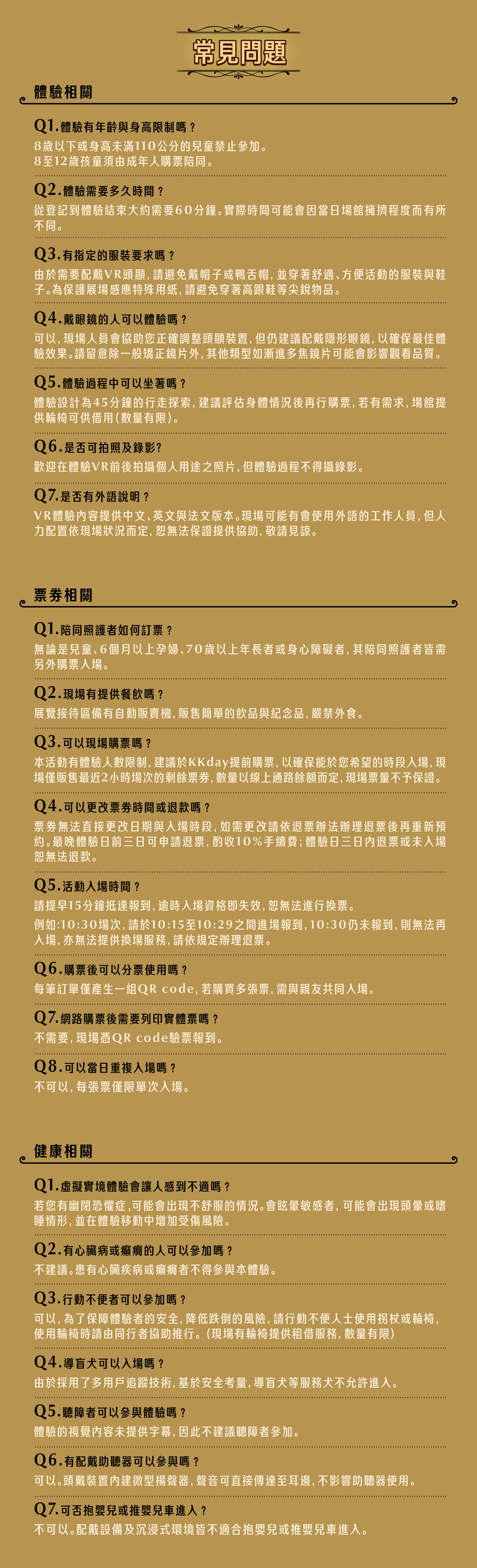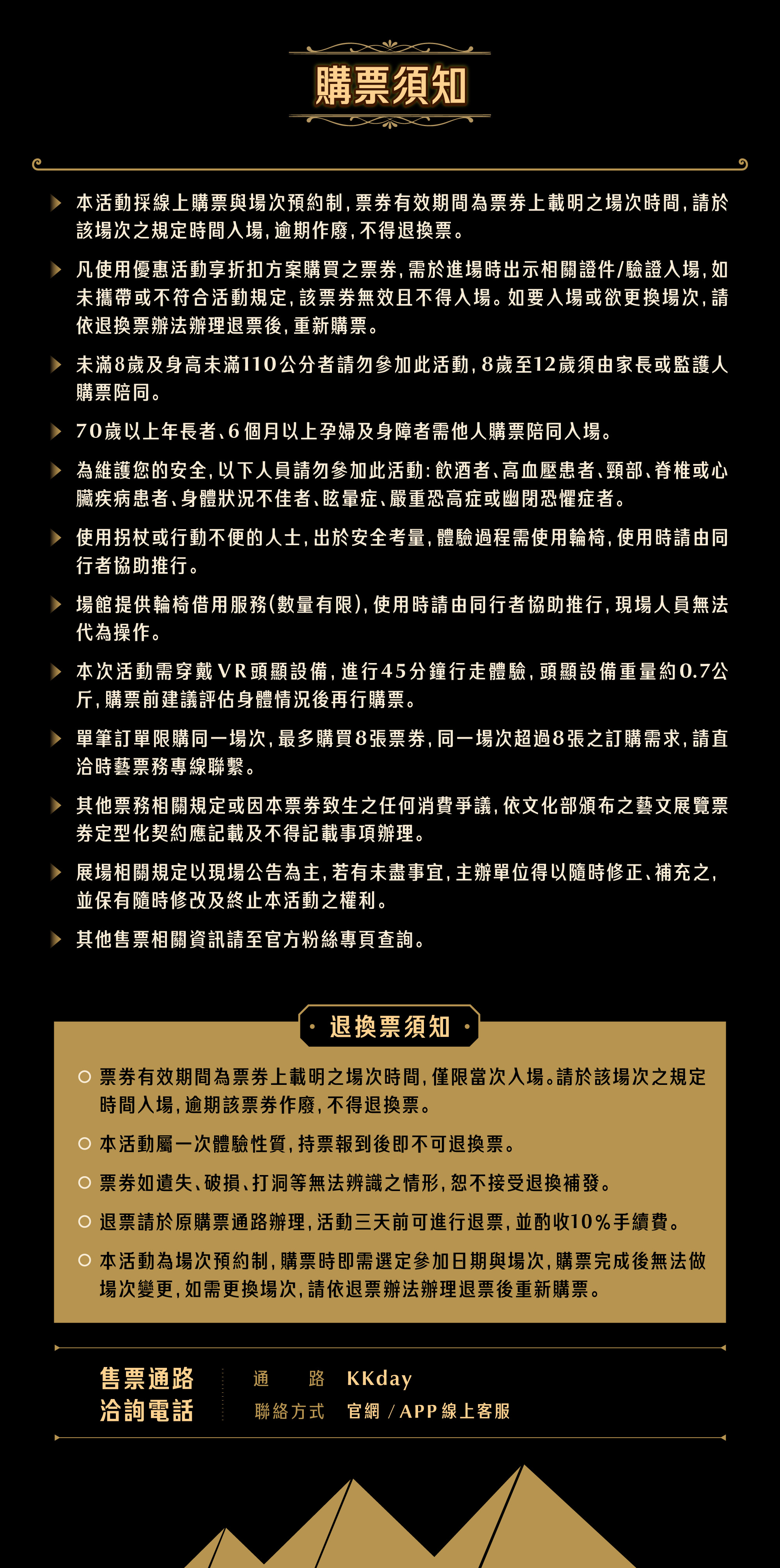 ✔VR 體驗時長:約 1 小時 (準備與說明:15 分鐘;節目時間:45 分鐘 )