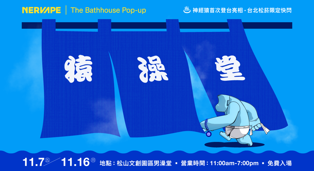 Nervape 攜手戶外品牌「人八月」於 2025 年 11 月 7 日至 11 月 16 日在松山文創園區男澡堂舉辦台北限定展覽《猿澡堂 The Nervape Bathhouse》。