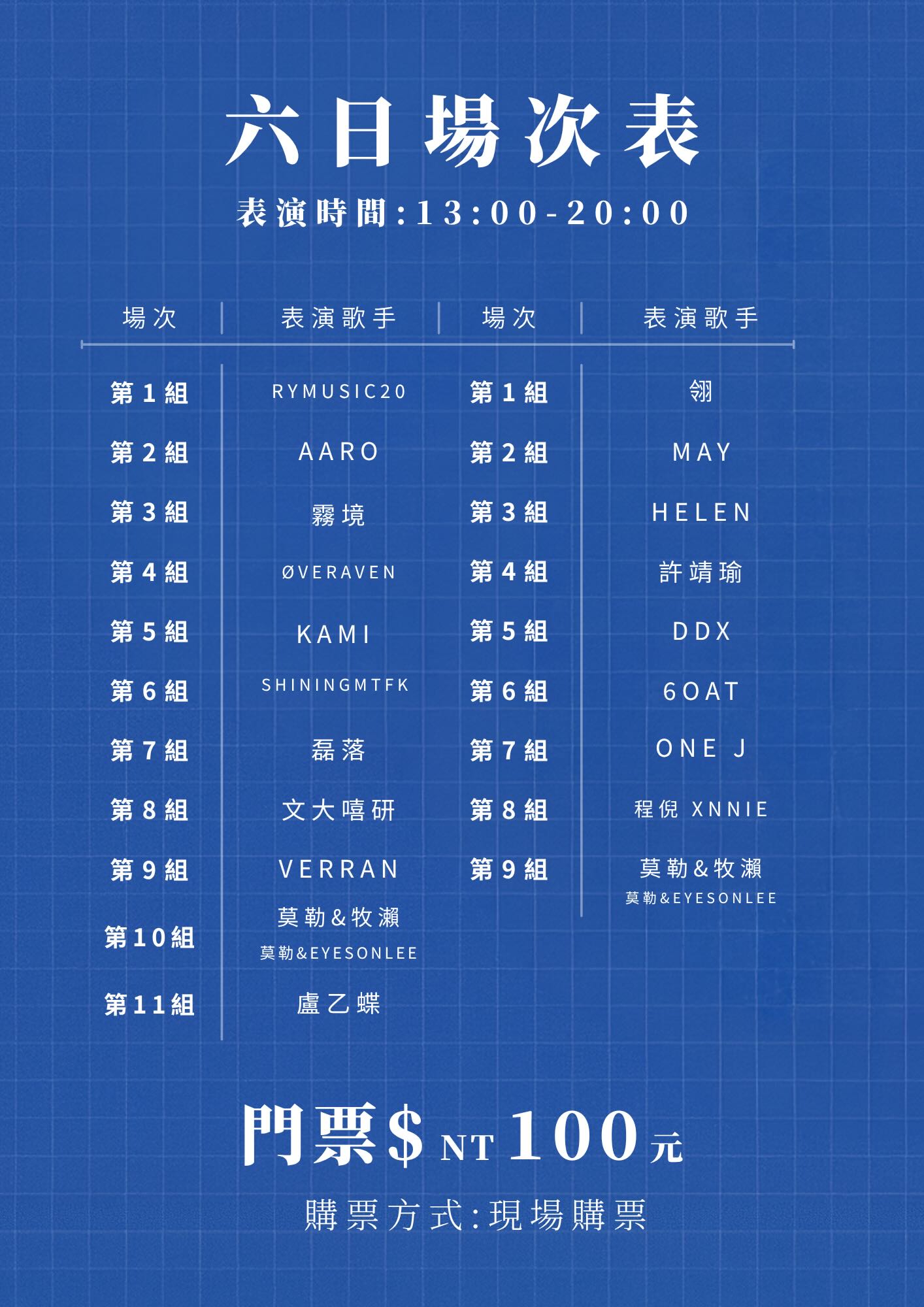 票務資訊|免費入場(假日票價新台幣 100 元)