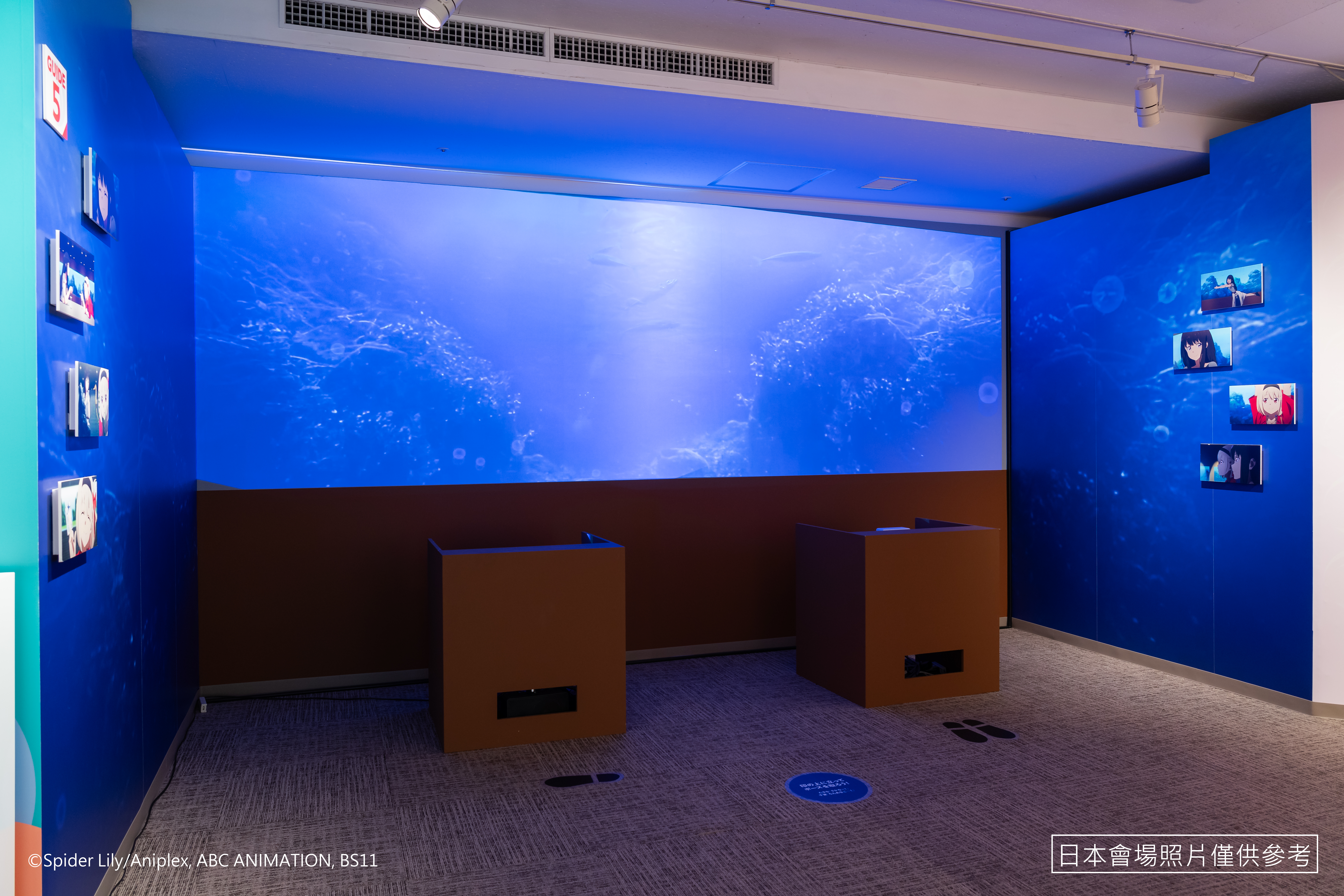 打造出沉浸感十足的大型水缸深海氛圍,重現動畫中極具代表性的經典場景。觀眾可走入畫面中央,模仿動畫屬於自己的「さかな」橋段,來回憶千束與瀧奈的羈絆。