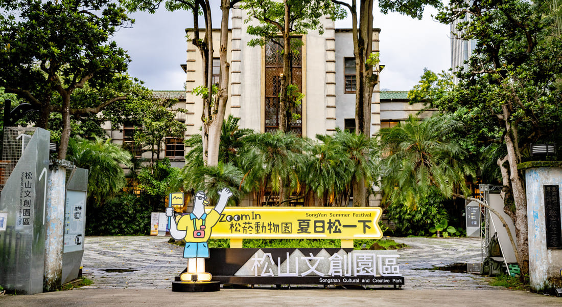 松山文創園區導遊『松鴨桑』在門口迎接大家!歡迎光臨夏日松一下-松菸動物園!